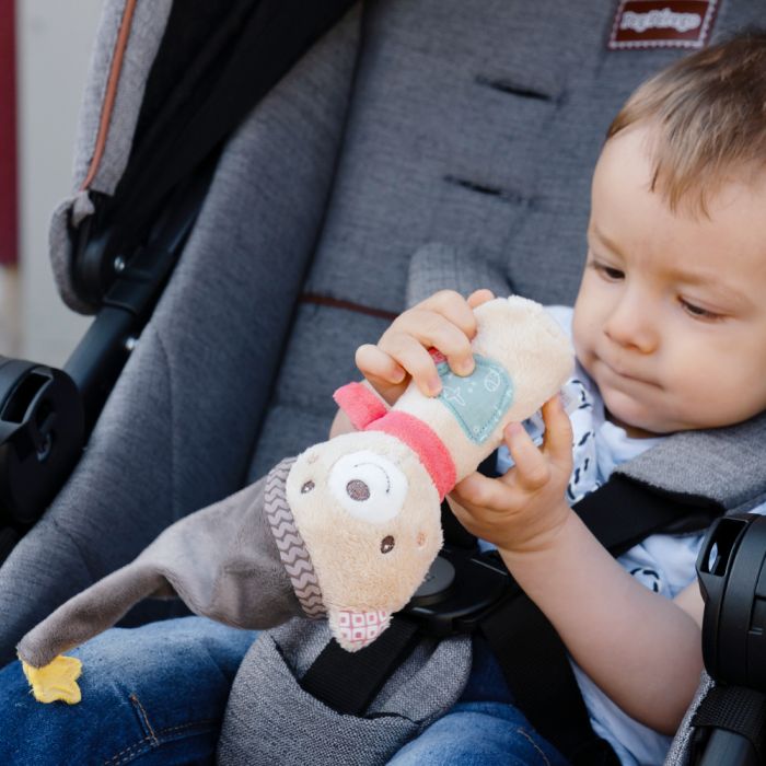 Cuddly grasping toy for rattling, squeaking, touching, playing – a devoted companion for babies and toddlers.