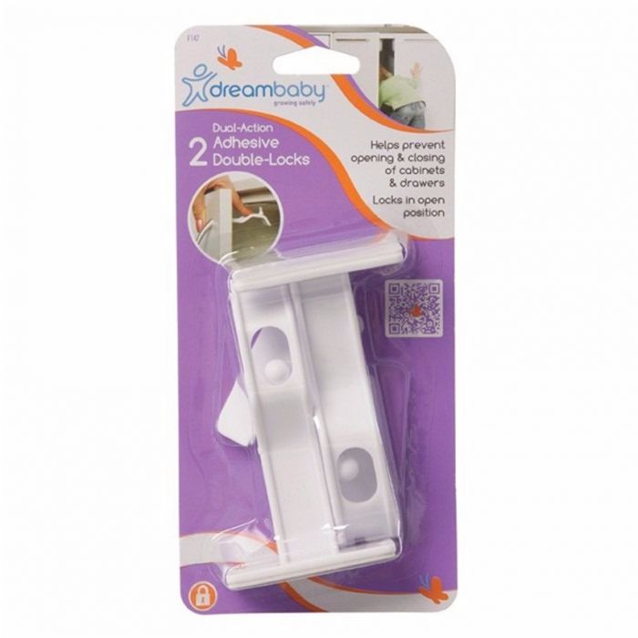 Dreambaby Dreambaby Adhesive Cupboard Double Locks (2 pack) are a safe and secure way to ensure that your child can´t open or close cupboard doors. They feature a dual lock system that stops them opening or closing completely. The adhesives are suitable for most surfaces.