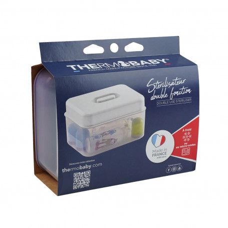 Keep your baby’s bottles, teats, and accessories perfectly clean and safe with the Thermobaby 2-in-1 Steriliser. Designed for flexibility, it gives you two simple and effective ways to eliminate harmful bacteria: fast steam sterilisation in the microwave or cold sterilisation with tablets. Whether you prefer the convenience of hot sterilisation in just a few minutes, or the practicality of a 24-hour cold solution, this steriliser adapts to your routine while ensuring maximum hygiene for your baby. Made in France, it combines practicality, safety, and reliability in one clever design.
