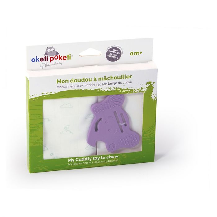 Thermobaby’s first teether & cotton blacket set is a wonderful 2 in 1 comforter for your little one. The soft cotton blanket can be attached in many different ways to the teether. When teething starts, it is never an easy period but with this fun cute teether and soft comforter in one, your baby will be soothed and reassured at the same time Available in 2 coulour: Purple or Green